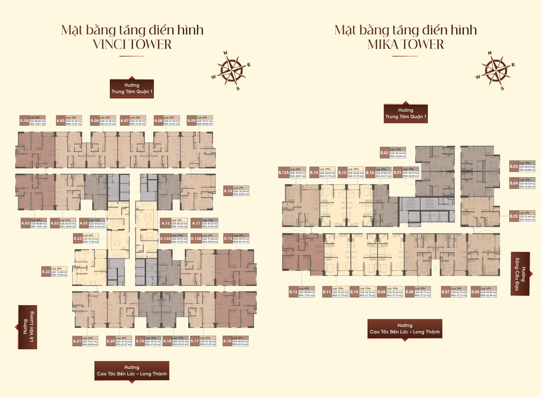 Tháp Mika 360 căn – 25 tầng với các loại hình: 1PN, 2PN, 3PN và 2PN sân vườn
